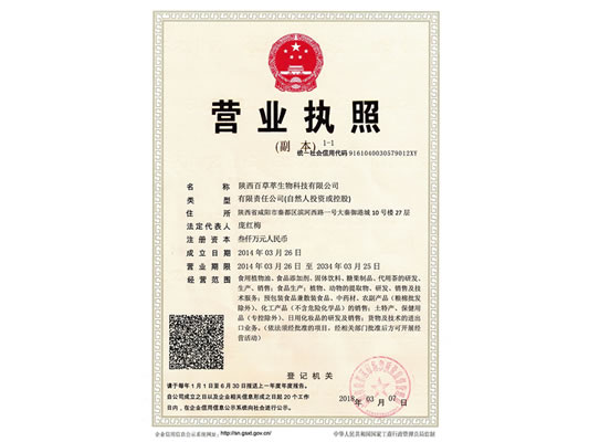 陜西百草萃生物科技有限公司,位于陜西省咸陽市秦都區(qū)濱河西路1號(hào)大秦御港城,公司成立于1996年,主要從事天然植物種植、研發(fā)、生產(chǎn)、加工、銷售為一體的高科技企業(yè)。主營(yíng)醫(yī)藥原料、保健品原料、化妝品原料,精細(xì)化工原料。公司致力于人類健康保護(hù)事業(yè)“ 以科技為動(dòng)力,以質(zhì)量求生存” 的本質(zhì),依托陜西高新科技技術(shù)人才和科研優(yōu)勢(shì),已形成多學(xué)科、全方位、高層次的技術(shù)管理精英團(tuán)隊(duì)。充分利用秦巴山區(qū)的天然藥物資源,歷經(jīng)多年發(fā)展為打造百草萃生物品牌奠定了基礎(chǔ)。